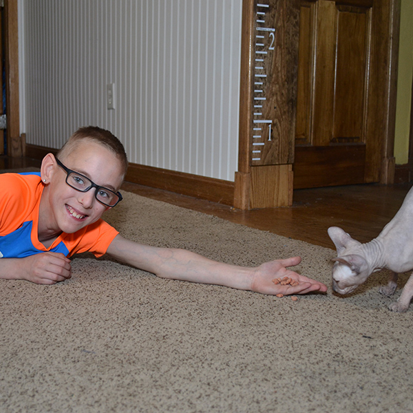 “With Brady’s sensitivities to many common allergens he was not able to have a pet with fur. Thanks to Community Crossroads, Brady now has a hairless cat named Lennox.”